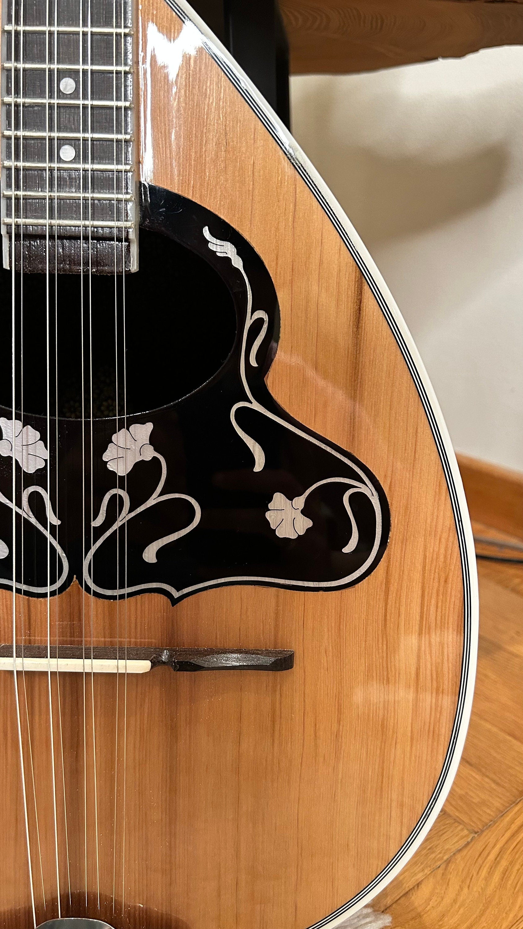 Headstock: Adorned with Celluloid accents, the headstock adds a touch of elegance to the bouzouki's appearance.
